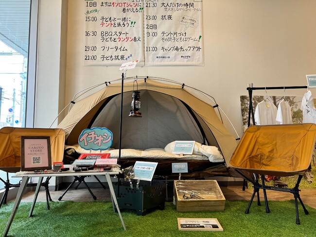 マーケティング演習商材『キャンパーアンドダンジョン』のターゲット層であるファミリーキャンパーの皆様に届くように、ファミリーキャンプの楽しみ方や、キャンプシーンを想定した売り場の設計となっています。
