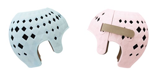 しかしながら、変形が強くなった場合には、耳やおでこ、目、頬、あごの形にもゆがみが生じることがあります。このような場合、先ほど述べた方法だけでは治りにくく、大人になってもゆがみの名残が残ってしまうこともあります。こうしたケースでは、ヘルメットを使った矯正治療が効果的であることがわかっています。海外では1900年代から、日本では2012年から保険外の診療として行われており、効果を示す研究もあります。
