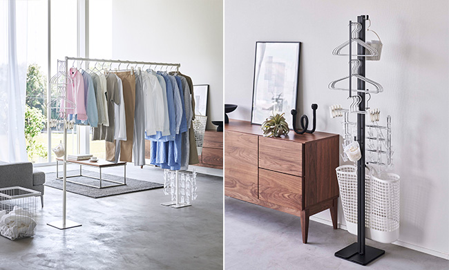【両方から注げる冷水筒 タワー】・【折り畳み室内物干し タワー】・【ハンギング傘立て タワー】・【トイレ棚下収納ラック タワー】・新商品4点をご紹介。