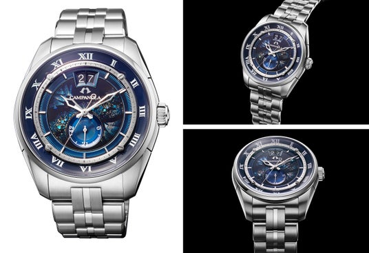 『カンパノラ』は、2000年にデビューして以来、腕時計を単に時刻を知るだけのツールではなく、「雄大な宙(そら)に想いを馳せ、今という時を愉しむ。」をテーマに掲げ、先端技術や匠の技を活かした独創的なモデルを発表し、高い評価を得てきました。ガラスに遮られたわずかな空間に、無限の宇宙を閉じ込める「宙空の美」をデザインコンセプトに、サークル形状の五徳リングなど、パーツを組み合わせた多重構造を持ち、建築物のように立体的な表情を醸しだすデザインが特長です。