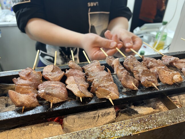 炭火焼きの香ばしさと、新鮮な豚もつのプリプリ感がたまらない。