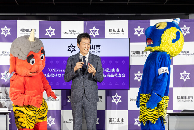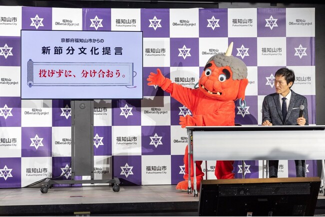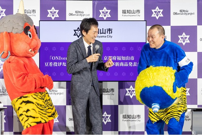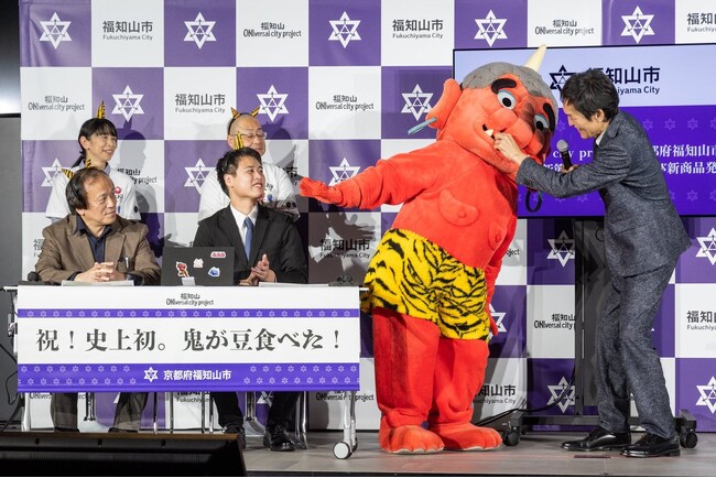 京都府福知山市は、“鬼の聖地”大江山があり、節分の時期には「追い出される鬼たちよ、集まれ!」と発信するなど、“鬼”を親しむ独特の文化があります。この文化をさらに広めて、鬼もヒトもみんなでワクワクできる“オニバーサル”な世界を目指し、約半年間に渡り「ONIversal city project」を行ってきました。そしてプロジェクトの集大成として、節分を目前に控えた2月1日に『“豆を投げない”新節分文化提言および新商品発表会』を行いました。