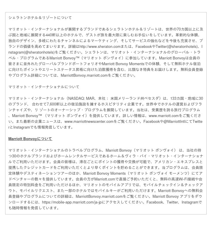横浜ベイシェラトン ホテル&タワーズでの対策についてはホームページにもご案内しております。こちらも併せてご確認ください。https://yokohama-bay-sheraton.jp/news/13/