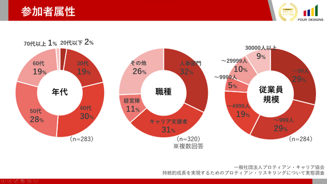 組織と個人のより良き関係性構築と個人の主体的なキャリア開発を支援する一般社団法人プロティアン・キャリア協会 (東京都新宿区、代表理事:田中研之輔・有山徹、以下、「当協会」)は、リスキリングに興味関心のある人事部門・キャリア支援者・経営陣他277人を対象に最新のリスキリング実態調査を実施いたしました。