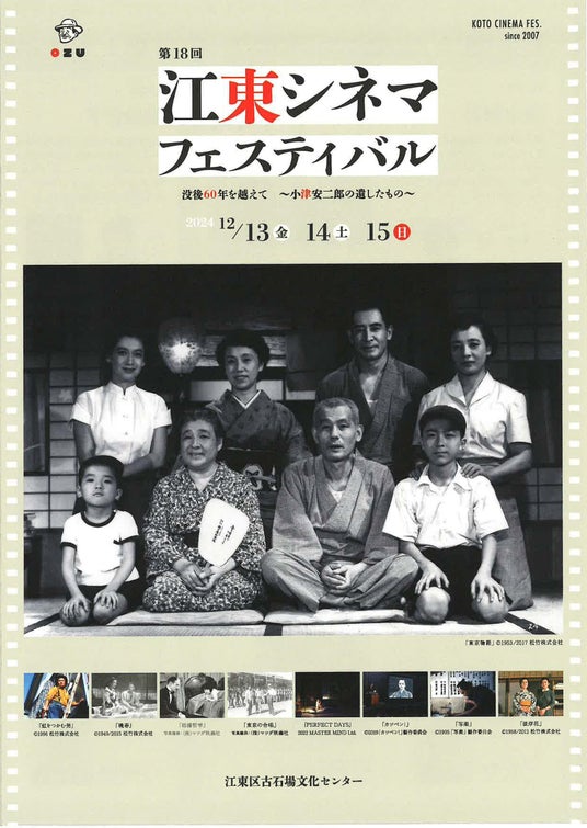 このシネマフェスティバルは世界的な映画監督「小津安二郎」さん生誕の地・深川を“映画の街”として盛り上げようと、公益財団法人 江東区文化コミュニティ財団 江東区古石場文化センターが毎年開催しているものです。