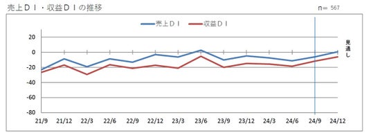 2024年10-12月期は、売上DIが6.7㌽、収益DIが5.7㌽それぞれ上昇すると予想していますが、年末に向けた期待値も小さくなっており、インバウンド需要が及ぼす影響も地域によって格差があります。