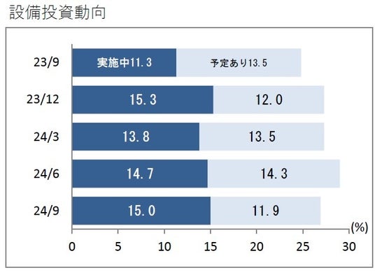 - 設備投資 堅調続くも業種間変化有:「予定あり」11.9%