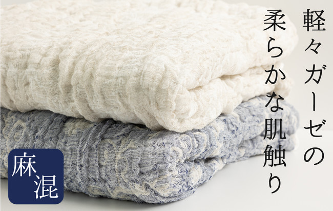 ・タイトル:創業76年!肌触りを追求したタオル屋がお届けする『麻使用のガーゼケット』