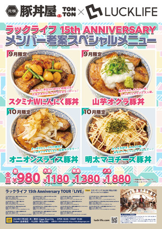 ラックライフ15周年ツアー応援企画として、メンバー考案による限定コラボメニューをTONTON全店舗で9月1日から販売スタート!