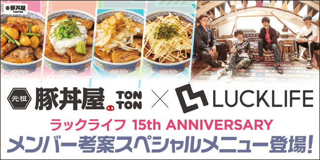 ワンズトライン株式会社(本社:大阪市北区芝田2丁目3番16号、代表取締役:山内仁)が運営する先日50店舗出店を達成した「元祖豚丼屋TONTON」と、9月より15周年全国ツアーが開始する「ラックライフ」による食と音楽のスペシャルコラボが実現!9月、10月の2ヶ月連続で限定コラボメニューが登場します。