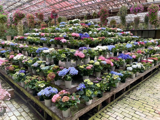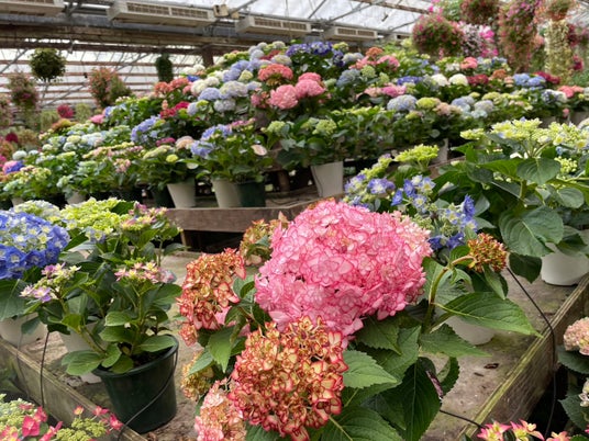 加茂荘花鳥園では、今年も恒例のアジサイヒルズを開始しました。加茂荘オリジナルアジサイ「KAMOセレクション」を中心に、展示温室の真ん中のヒルズから直接お好みのアジサイを選んでご購入していただけます。