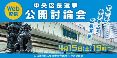 公益社団法人東京青年会議所(所在地:東京都千代田区平河町、理事長:下山田 敬介) 中央区委員会は、中央区長選挙の公開討論会を4月15日(土)19時00分よりニコニコ生放送にて生配信いたします。