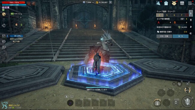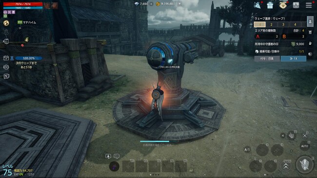 新コンテンツ「領地防衛戦」は、ギルドメンバーたちと中央に位置する女神像を守り、襲ってくる魔物の討伐に成功するとクリアとなるタワーディフェンス型のコンテンツです。領地防衛戦をクリアすることでギルド経験値やさまざまな報酬が獲得できます。