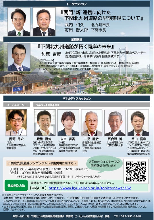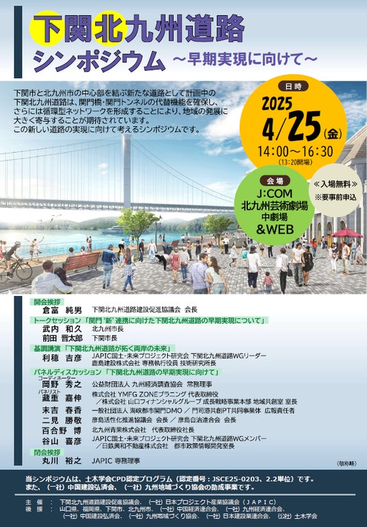 下関北九州道路建設促進協議会では、この新しい道路の実現に向けて考えるシンポジウムを開催します。