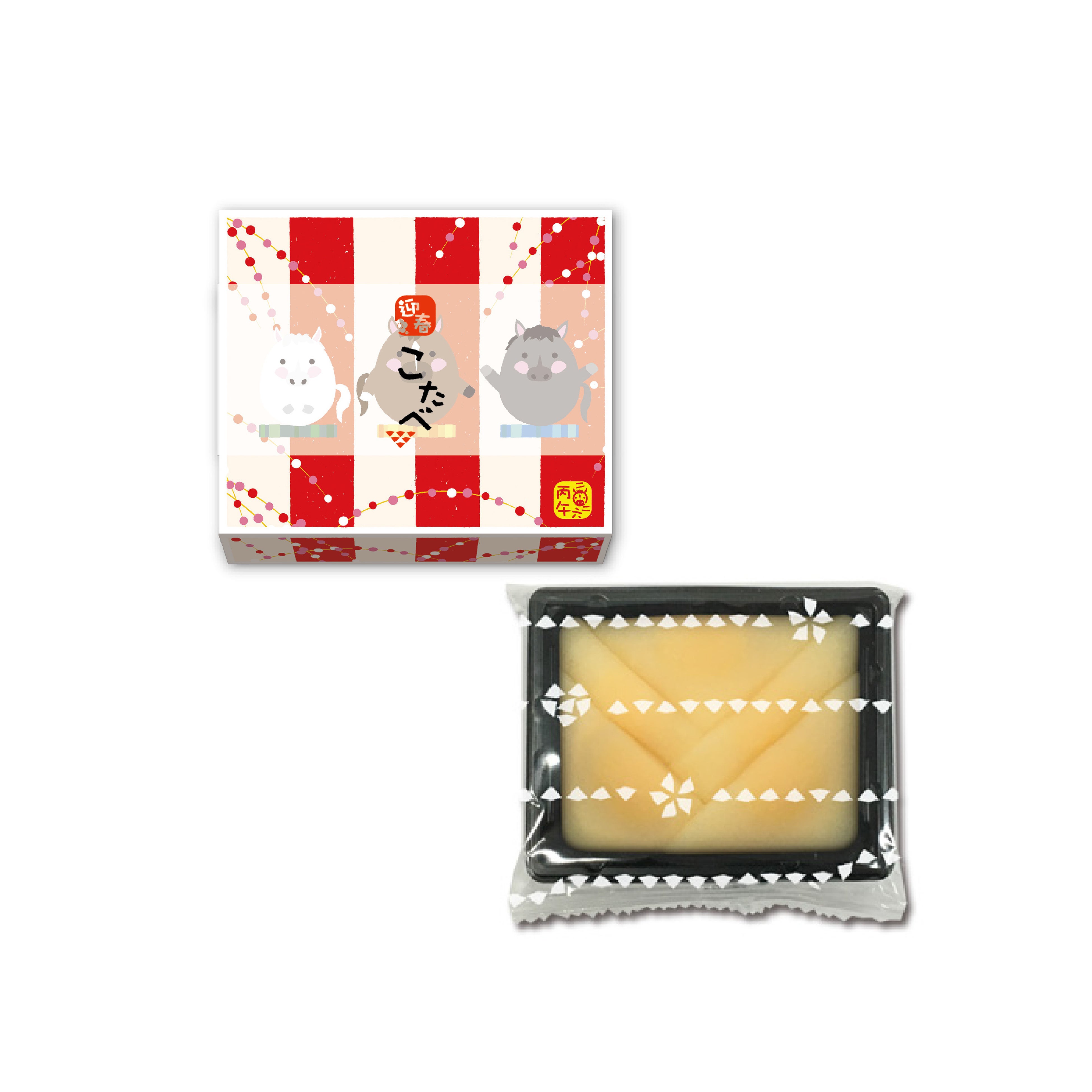 2016年より販売を開始した「こたべ栗きんとん(迎春箱)」は、毎年干支にあわせたデザインをパッケージに採用しています。2026年は、午(うま)をイメージしたポップでかわいらしいパッケージです。