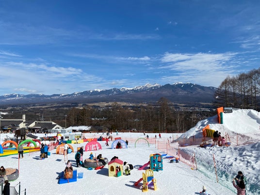 富士見パノラマリゾートのキッズパークでは数種類のソリが使い放題!くねくねした抜け道をチューブで滑るウェーブチュービングや、雪遊びエリアなどワクワクするアトラクションで遊ぼう!たっぷり約5時間滞在。疲れたら靴を脱いで休憩所でお寛ぎいただけます。