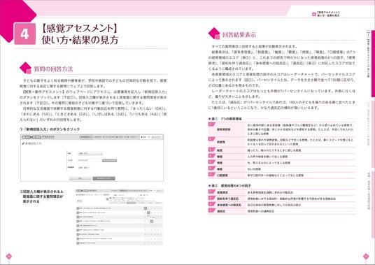 本書では、Webサービス【感覚+動作アセスメント】の使い方、アセスメント結果の活用法、具体的な支援の方法までイラストつきでわかりやすく紹介しています。