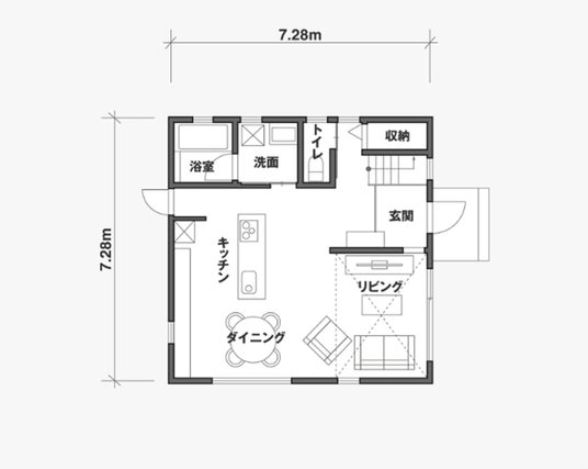 ■窓の家間口4間×奥行4間(7.28m×7.28m)