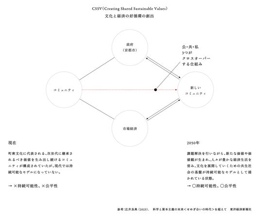 京都の文化資本、社会資本、経済資本をクロスオーバーさせあらゆる課題を解決し、社会的富を生み出す人財、及び、その仕組みを再定義・再構築する必要がある。