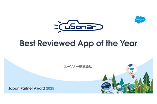 ユーソナー株式会社(本社:東京都新宿区、代表取締役会長:福富 七海、代表取締役社長:長竹 克仁、以下「ユーソナー」)は、Salesforce Japan Partner Award 2025における、「Growth部門 Industry of the Year<Manufacturing>」「Best Reviewed App of the Year」を受賞しました。昨年度の当該業界での協業実績におけるビジネス規模、ビジネス成長率を総合的に評価し、特に秀でた実績を残したことに加え、AppExchangeサイトでのユーザレビュー数と平均評価の両面で秀でた実績を残したことを評価され授与されたものです。