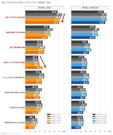 一方、「自分のペースでやり切れる仕事」は昨年より5.6ポイント高い割合となり、2019年から4年連続増加する結果となりました。(図5)