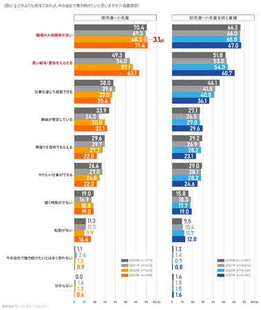 今の会社で働き続けたいと思える状況、「職場の人間関係が良い」が7割を超え最多に