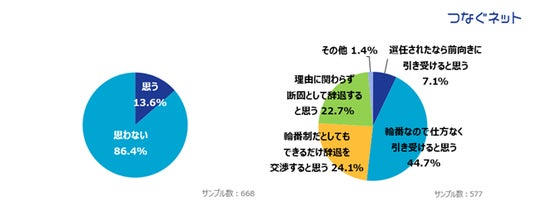 (なりたくないと回答した人のうち、輪番制で巡ってきた場合でも辞退したい人の割合が46.8%)