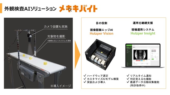 「最新技術を泥臭く民主化する」をミッションに、製造業の人手不足をAIやロボットで解決する大阪発のスタートアップです。創業から一貫して、全てのモノづくり企業の皆様に、道具としてのAIをより手軽に使ってもらうため、サービス開発に取り組んできました。2022年4月に3期目を迎え、検品検査自動化AIサービス「メキキバイト」は30社を超える企業に導入いただいています。検品検査の自動化だけでなく、ロボットアーム等を組み合わせた不良品を取り除く除去機構の提供にも積極的に取り組んでいます。