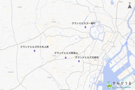 画像4 東京都心部におけるグランドヒルズを示した地図(マンションナビ)