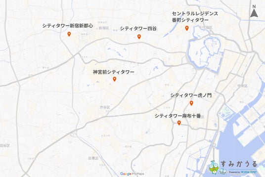 画像3:東京都心部における代表的なシティタワーを示した地図(マンションナビ)