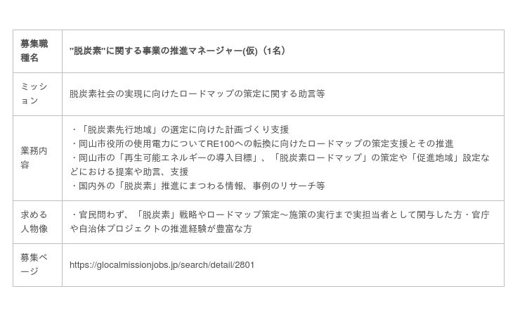 この度、岡山市の課題解決や都市ブランドの向上を図るために、教育DX、脱炭素、広報の新たな分野でも、民間の最前線で活躍する独立・副業プロフェッショナルの知見を活かしてプロジェクトを推進することが必要不可欠なものと判断され、戦略マネージャーの募集をすることとなりました。