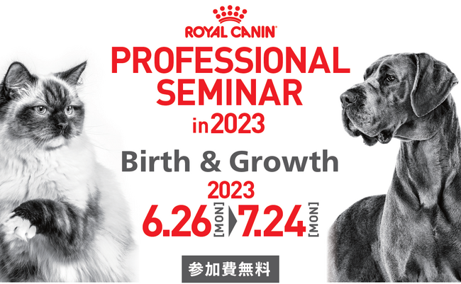 栄養学に基づいて犬と猫の健康を実現する企業(Health Through Nutrition Company)として、プレミアムペットフードおよび食事療法食を展開するロイヤルカナン ジャポン(本社:東京都港区、社長:山本 俊之)は、犬と猫の健やかな誕生と成長をサポートするための学術セミナー「PROFESSIONAL SEMINAR in 2023」を、6月26日(月)から7月24日(月)までオンラインで開催します。