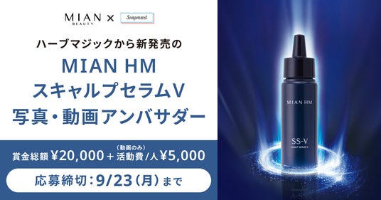 クリエイターとの共創を通じて企業のマーケティング課題を解決する、株式会社CREAVE(本社:東京都千代田区、代表取締役社長:中村真奈、以下 CREAVE)は、三口産業株式会社様ミアンビューティー「ハーブマジック MIAN HM スキャルプセラムV」のアンバサダーを9月18日(水)から募集します。