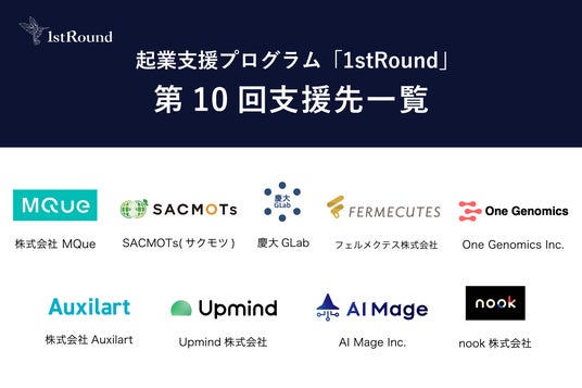 東京大学協創プラットフォーム開発株式会社(本社:東京都文京区本郷、代表取締役社長:植田浩輔、以下、「東大IPC」)は、国内最大規模を誇る大学(※1)共催の起業支援プログラム「1stRound」の第10回支援先を決定いたしました。またこの度、九州電力株式会社(本社:福岡県福岡市、代表取締役社長:池辺和弘)、東邦ガス株式会社(本社:愛知県名古屋市、代表取締役社長:増田信之)が新たにコーポレートパートナーとして参画しました。