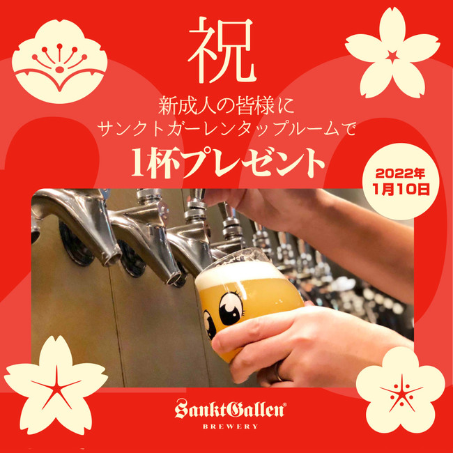 サンクトガーレン有限会社(神奈川県厚木市/代表取締役 岩本伸久)は2022年1月10日(月・祝)、厚木市の新成人の方を対象に、小田急線本厚木駅北口すぐの「サンクトガーレン タップルーム」にてクラフトビールを1杯プレゼント致します。