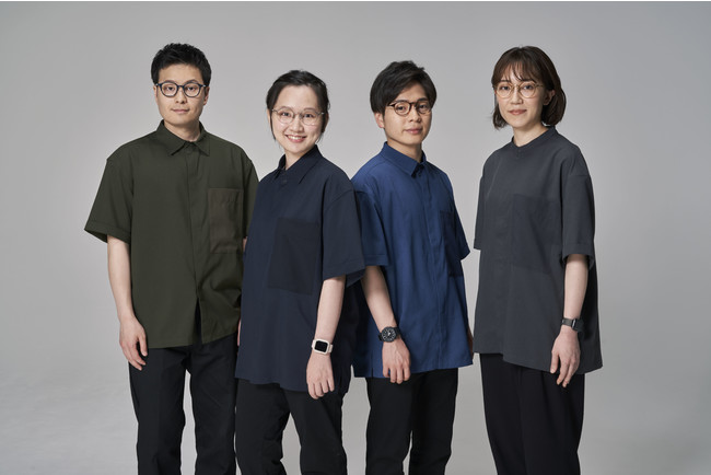春夏用シャツでは、使用済みペットボトルをケミカルリサイクルして作られた糸を経糸(タテ糸)に、吸水速乾性のあるレギュラーポリエステル糸を緯糸(ヨコ糸)に使い、吸水性と速乾性に優れて快適な着心地かつ、シワになりにくいオリジナル生地を制作。これにより使用素材はポリエステル100%ですが、そのうち54%がリサイクル素材となり、機能性と環境への配慮の両立を実現しました。また、シャツのカラーは今回のために用意したオリジナルのカラー4色を採用。知性や落ち着きを感じられる色をベースに通常店のシャツにはネイビーを使用したほか、主要都市の3店舗については街のイメージに合わせてそれぞれ異なるカラーを用い、渋谷店はブルー、原宿店はオリーブ、京都寺町通店はグレーのシャツを着用します。