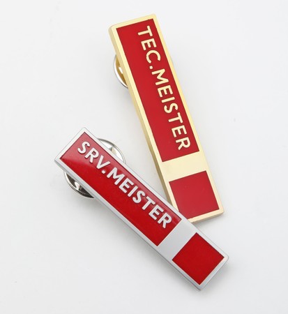 接客に関する「サービスマイスター」と技術に関する「テクニカルマイ スター」の2種類があり、新しい制服ではお客様から見える胸元の位置にピンを着用します。