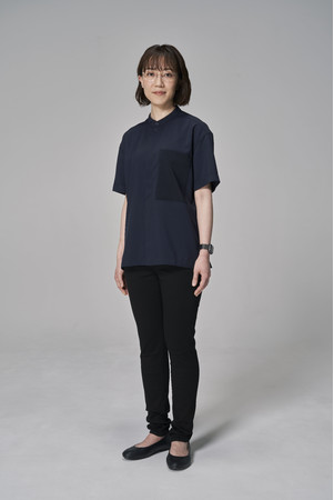 新しい制服は、アイウエアという商品を取り扱うスタッフとして安心感や信頼感をお客様に抱いていただけるよう、清潔さや上品さが感じられることを前提にしつつ、トレンド感のあるスタイルやサステナビリティを重視して企画。これまでの制服は男性用と女性用で仕様が分かれていましたが、今回着用を開始する春夏用の制服は規格を共通にし、ジェンダーレスなデザインやサイズ感を取り入れた襟型の異なる2タイプのシャツを採用しました。また秋冬用の制服にはコートやジャケットを導入予定です。