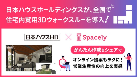 空間データ(*1)活用プラットフォーム「スペースリー」を運営する株式会社スペースリー(所在地:東京都渋谷区、代表取締役:森田 博和)の住宅内覧用3Dウォークスルーのかんたん作成&シェアサービスが、日本ハウスホールディングス全国7エリア61の支店・営業所で採用されたことをお伝えします。