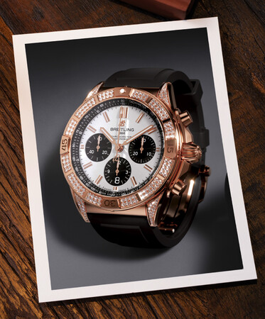 ブライトリング ブティック 金沢には、ブティックならではの特別なタイムピースをご用意しています。ダイヤルはシルバー×ブラックのサブダイヤルを採用し、ベゼルとラグには合計0.9カラットにのぼる約200個のダイヤモンドをセッティング。18Kレッドゴールドのケースにブラックのラバーベルトを組み合わせた、ひときわ大胆でラグジュアリーなモデルです。機能性を維持しながら圧倒的な美しさと存在感を兼ね備えたタイムピースには、精度と信頼性における最高の認定基準であるCOSC公認クロノメーター、キャリバー01を搭載。サファイアクリスタル越しにその美しいムーブメントを覗き込むことができます。本作はブティック 金沢でいち早くご覧いただけます。