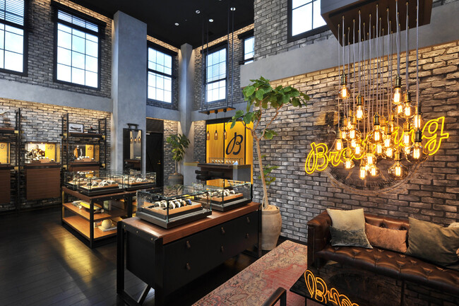 ブライトリング ブティック 金沢の前身は、2002年にオープンした北陸地方初のブライトリング・コンセプトショップであるスピリット・オブ・ブライトリング 金沢 BY WING。2016年には金沢市片町エリアに移転しWING金沢店の2階で展開されていました。この度、同店がブライトリング ブティック 金沢として新たな地で生まれ変わります。金沢の観光やショッピングの中心地、香林坊エリアに位置し、国内初となるホテル内一階にオープンする路面店。2フロア分の高さのある天井高により圧倒的な解放感のあるワンフロア構成のブティックです。ガラス張りの外壁には最新のヴィジュアルが掲示されています。店内は全世界のブライトリング ブティック同様に、ブライトリング独自の最新デザインコンセプト、インダストリアル・ロフトを採用。ヴィンテージ感のある内装に、ハンドクラフトの家具を配するなど、モダンレトロな雰囲気を演出します。陸海空にまたがるブライトリングのフィールドを感じさせる空間で、ブライトリングの世界観を存分に堪能することができます。最新のディスプレイを導入した店内には、最新作から希少な限定モデルまで幅広い時計が展示され、圧倒的な品揃えを誇ります。ブライトリング社による研修を受けた経験豊かなスタッフが在籍し、時計の専門知識だけでなく高いホスピタリティを併せ持つスペシャリストがお客様をお迎えします。