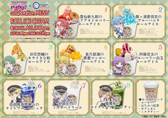 雲仙新九郎や酸ヶ湯愛琉志ら主要キャラクターたちをイメージした、限定のロールアイスクリーム&ドリンクが登場!