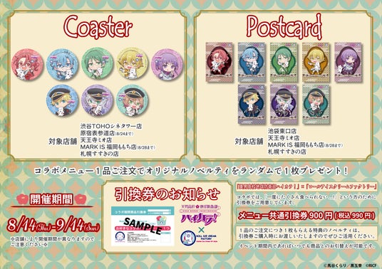 対象のコラボメニュー(アイスまたはドリンク)をご購入いただいた方に、描き下ろしビジュアルを使用した限定ポストカード(全8種/ランダム)をプレゼント!