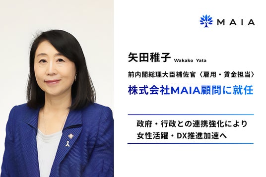 女性が自分らしく働く環境を作るため、女性デジタル人材の育成と全国の企業・自治体のデジタル化支援を行う株式会社MAIA(本社:東京都港区、代表取締役:月田 有香、以下「MAIA」)は、2025年7月1日付で、前内閣総理大臣補佐官〈雇用・賃金担当〉の矢田稚子氏を顧問に迎えました。女性デジタル人材の育成と官民連携による地域DXを強化し、持続可能な地域経済と新しい働き方の実現を目指します。