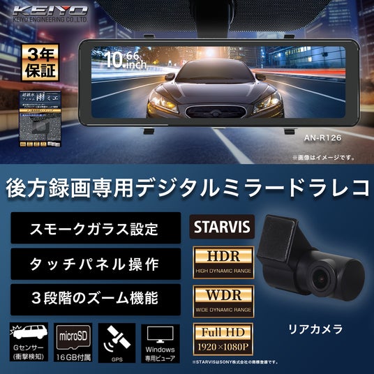 株式会社慶洋エンジニアリング(東京都港区新橋)はフロントドラレコ設置済みの方必見!STARVIS搭載・製品3年保証付き!新型後方録画専用デジタルミラードラレコAN-R126を発売致します。