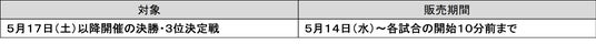 「宇都宮ブレックス vs 千葉ジェッツ」、「三遠ネオフェニックス vs 琉球ゴールデンキングス」各試合、試合開始10分前まで販売