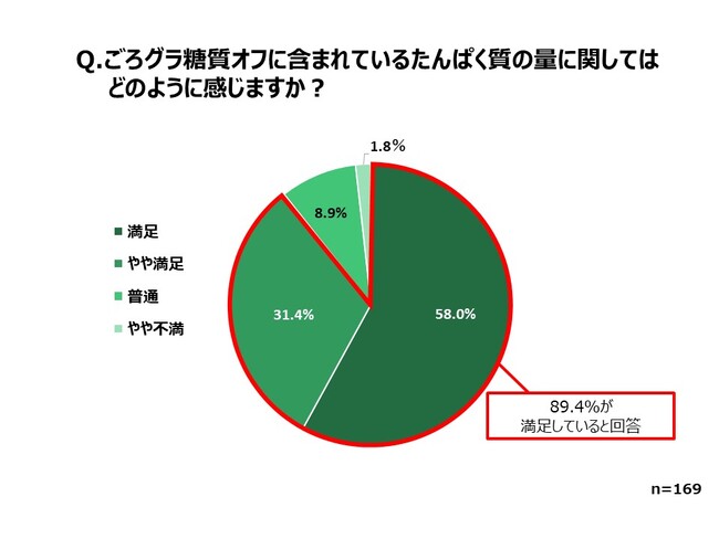 ◆89%が「ごろグラ糖質オフ」に含まれているたんぱく質の量に「満足」「やや満足」と回答