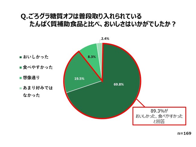 ・89%が他のたんぱく質補助食品と比べ「おいしかった」「食べやすかった」と回答!