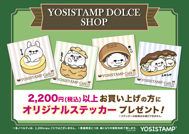 また、購入特典として2,200円(税込)以上お買い上げ頂いた方にはDOLCE柄のうさぎさん、くまさん、ぶたさん、ぬこさまのオリジナルステッカーを1枚プレゼント!顔出しパネルの撮影コーナーもあり、盛りだくさんのイベントとなっているので、お楽しみに。