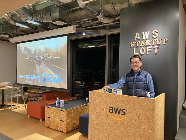 この度はAWSジャパンが展開するスタートアップのためのコワーキングスペースであるAWS Startup Loft Tokyoにて、自治体の官民連携担当者の皆様へS:ROADをアピールさせていただく機会をいただき、感謝しております。ピッチでは、我々のサービスがいかに自治体や地域社会におけるドローン活用の進展に貢献できるかを発信させていただきました。S:ROADはどこでもドローンを安心して飛行させることができるよう、地域が一体となって空路を建設していくためのプラットホームです。S:ROADがドローンのポテンシャルを最大限に引き出せるよう、今後とも産業に貢献していきたいと考えています。